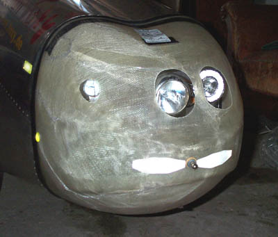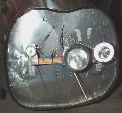 Reflektorring montiert. In der Mitte ist eine Bosch - Lampe, Baujahr ca. 50ger